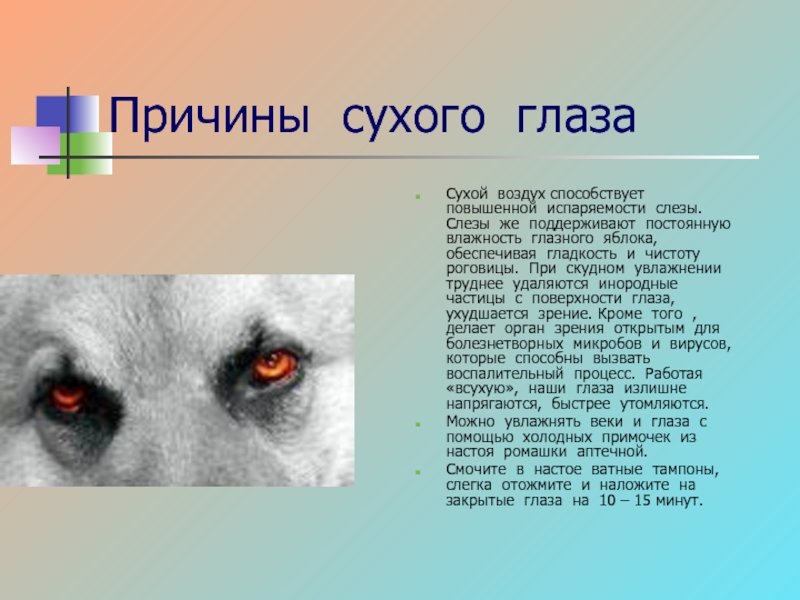 Сухой воздух способствует повышенной испаряемости слезы. Слезы же поддерживают