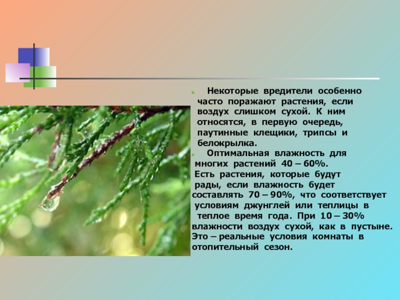 Слайд 8Влияние сухого воздуха на комнатные растения.