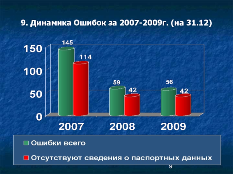 Слайд 99. Динамика Ошибок за 2007-2009г. (на 31.12)