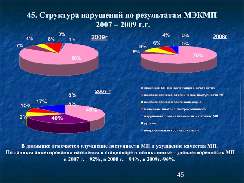 По данным анкетирования населения в стационаре и поликлинике – удовлетворенность МП в 2007 г. – 92%, в 2008 г. – 94%, в 2009г.-96%.