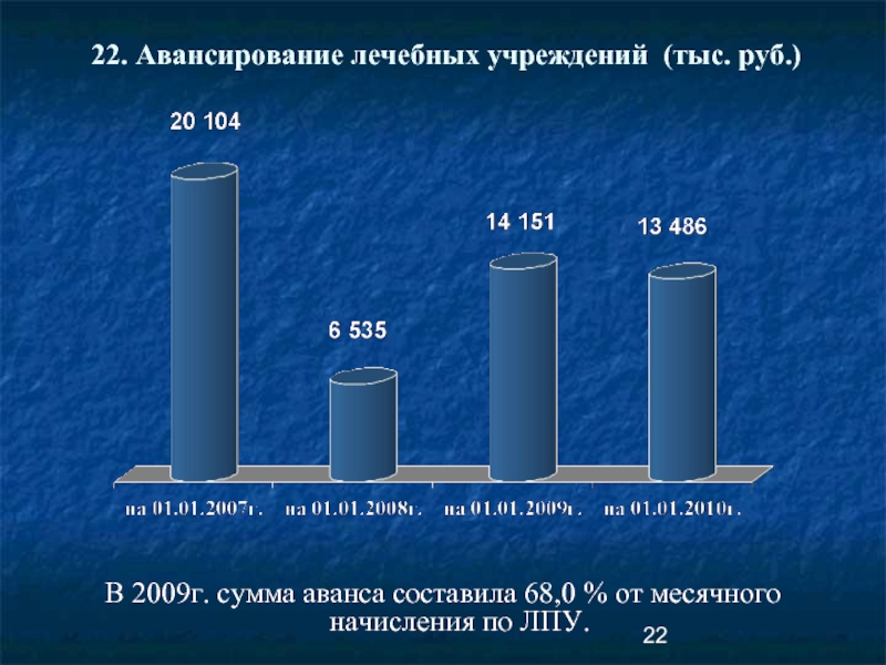 Слайд 2222. Авансирование лечебных учреждений (тыс. руб.)