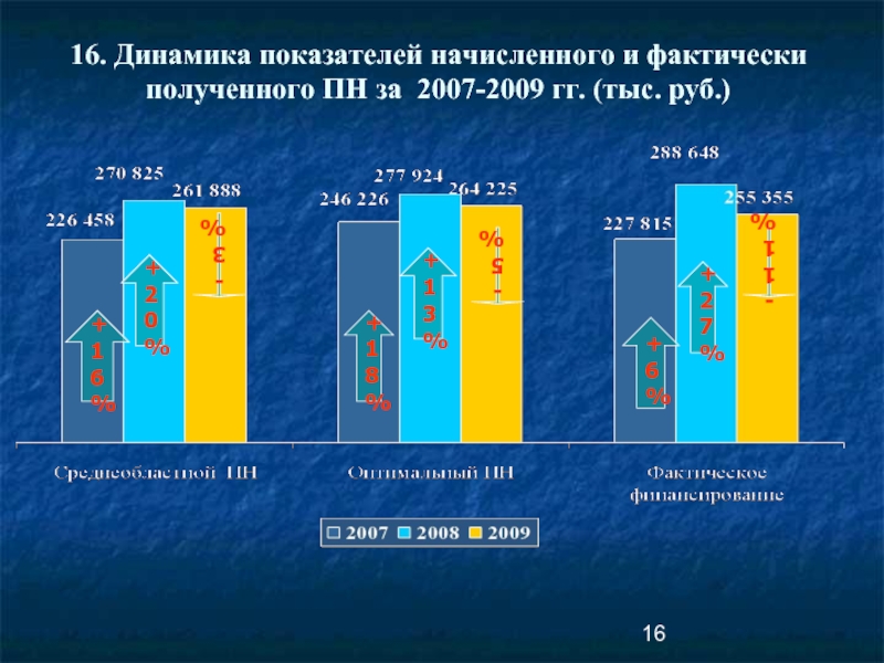 Слайд 1515. Фактическое финансирование по отношению к начисленному ПН (тыс. руб.)