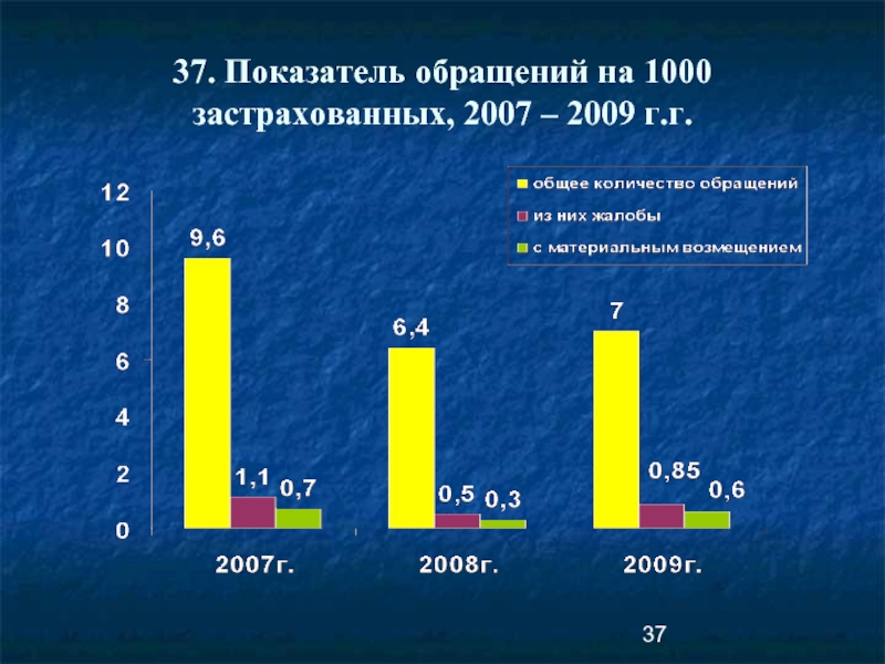 Слайд 3737. Показатель обращений на 1000 застрахованных, 2007 – 2009 г.г.