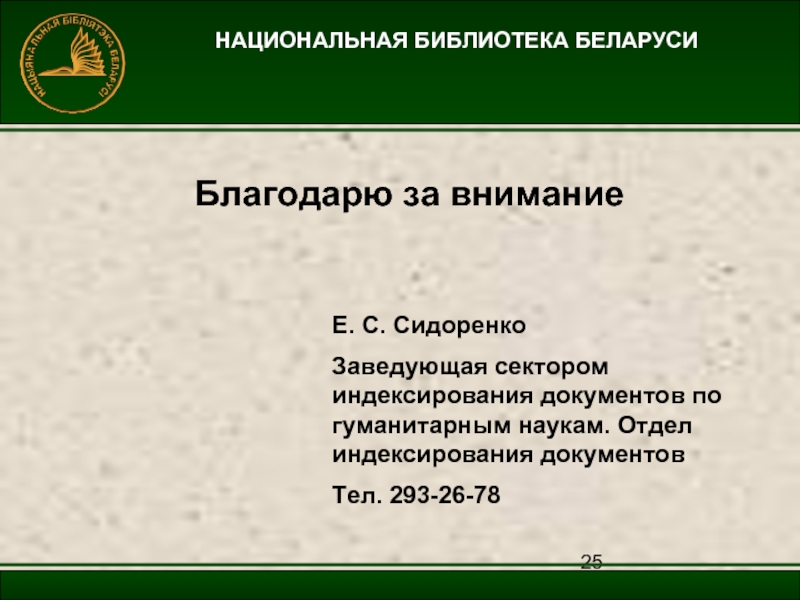 Заведующая сектором индексирования документов по гуманитарным наукам. Отдел индексирования документов