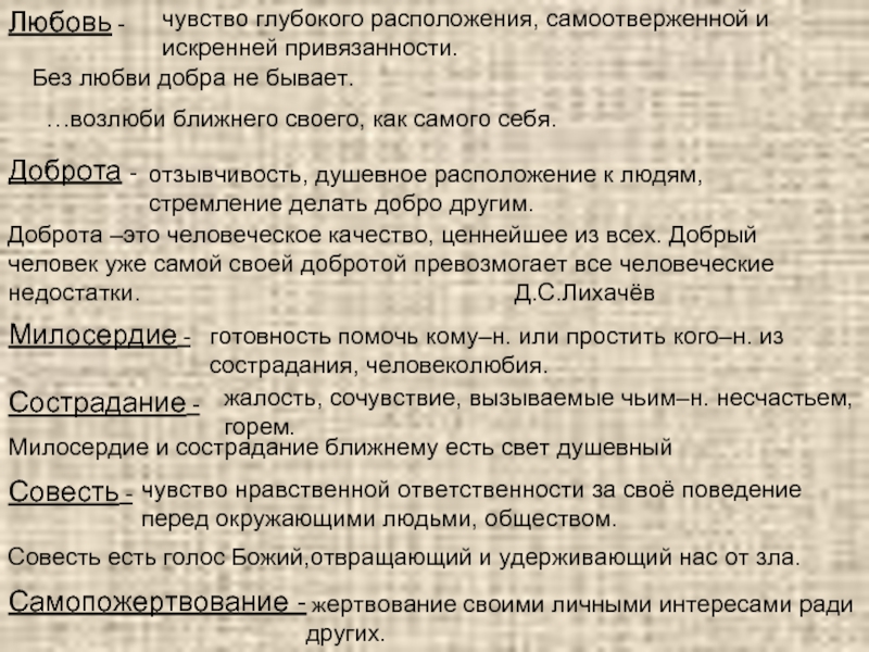 чувство глубокого расположения, самоотверженной и искренней привязанности.