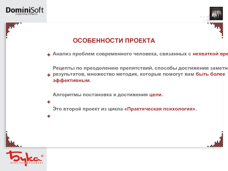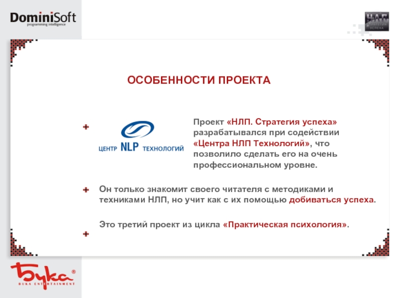 Проект «НЛП. Стратегия успеха» разрабатывался при содействии «Центра НЛП Технологий», что позволило сделать его на очень профессиональном уровне.