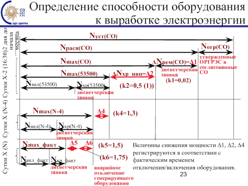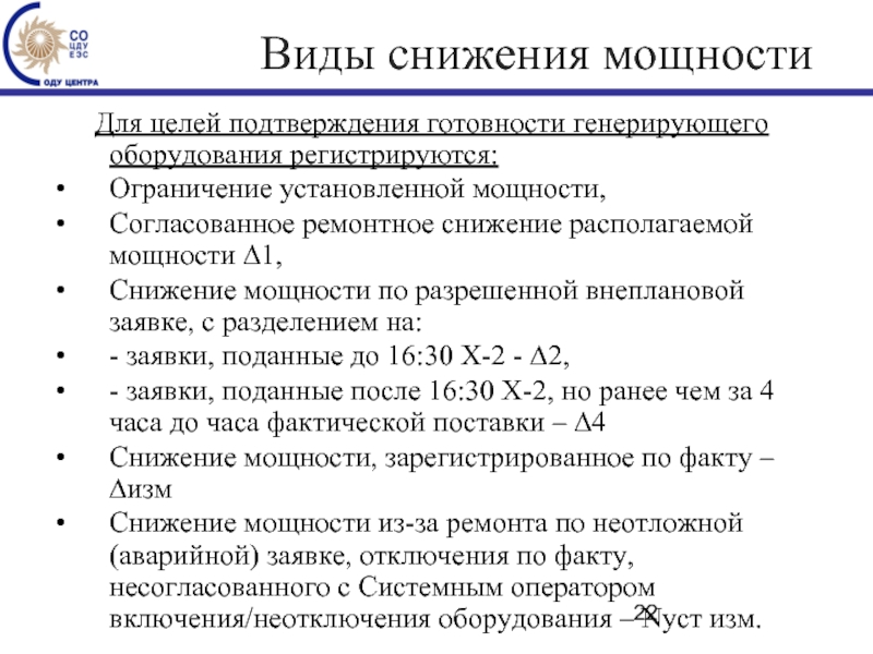 Величины снижения мощности ∆1, ∆2, ∆4 регистрируются в соответствии с фактическим временем отключения/включения оборудования.