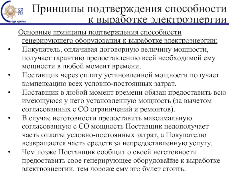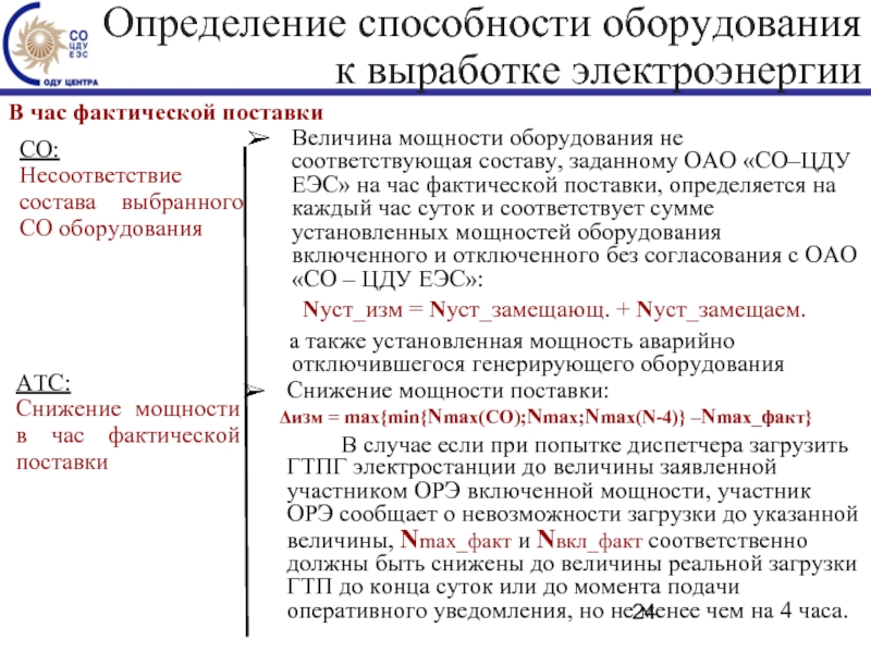СО определяет только системные условия (сетевые ограничения, межсистемные перетоки и пр.)!!!