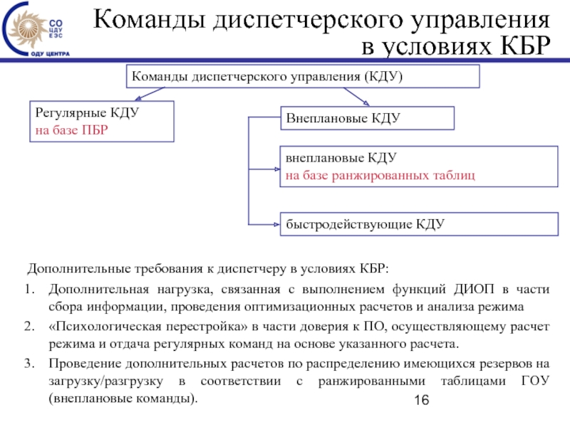 РДУ на базе ранжированных таблиц при отдаче ДД ЦДУ внеплановой команды