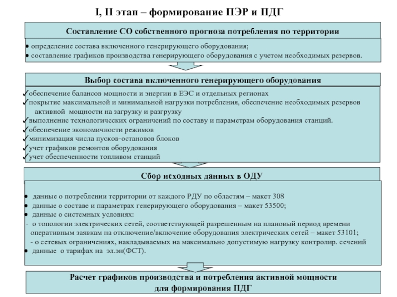 составление графиков производства генерирующего оборудования с учетом необходимых резервов.