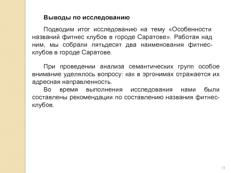 Во время выполнения исследования нами были составлены рекомендации по составлению названия фитнес-клубов.
