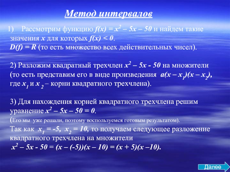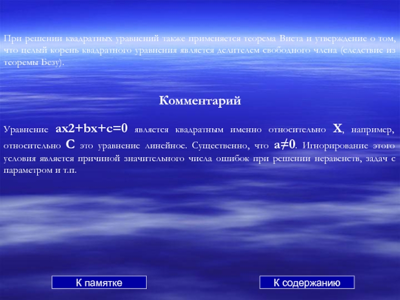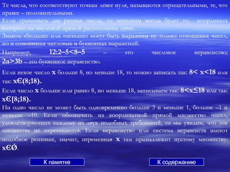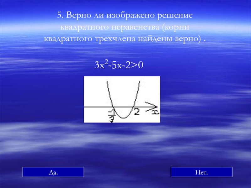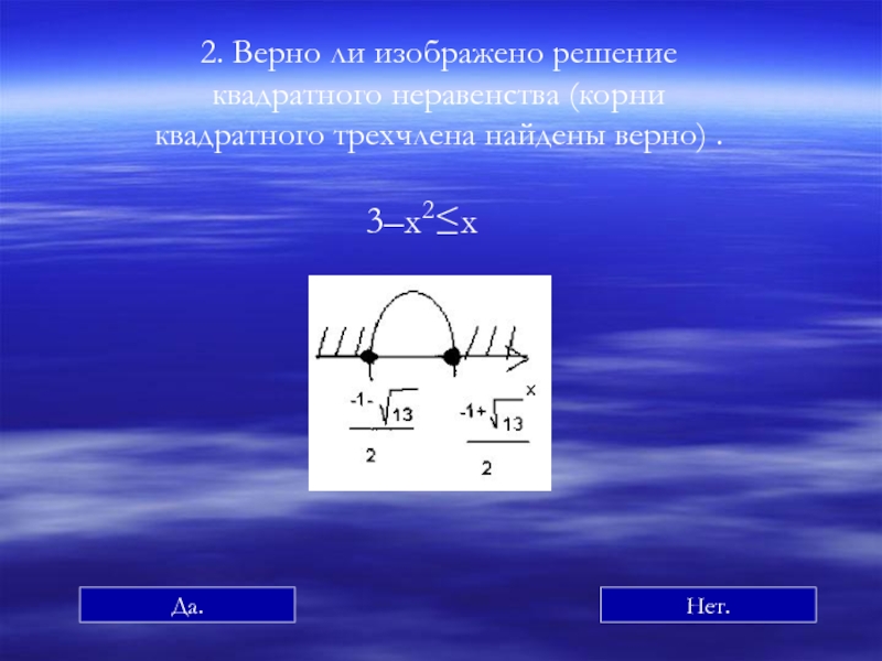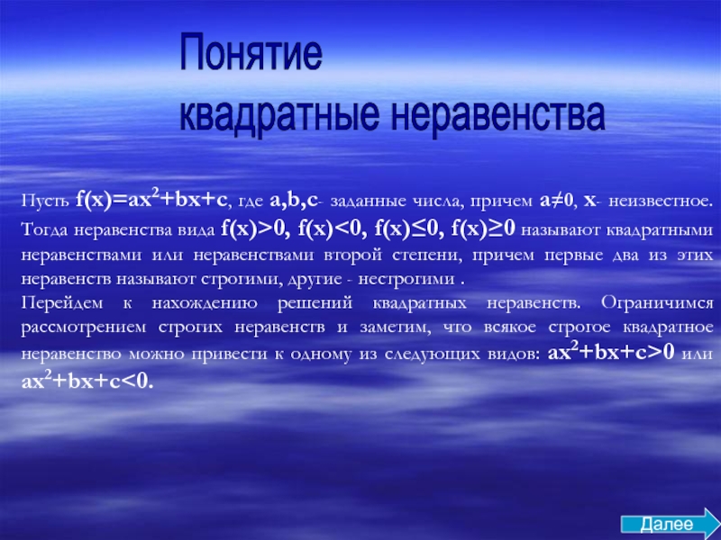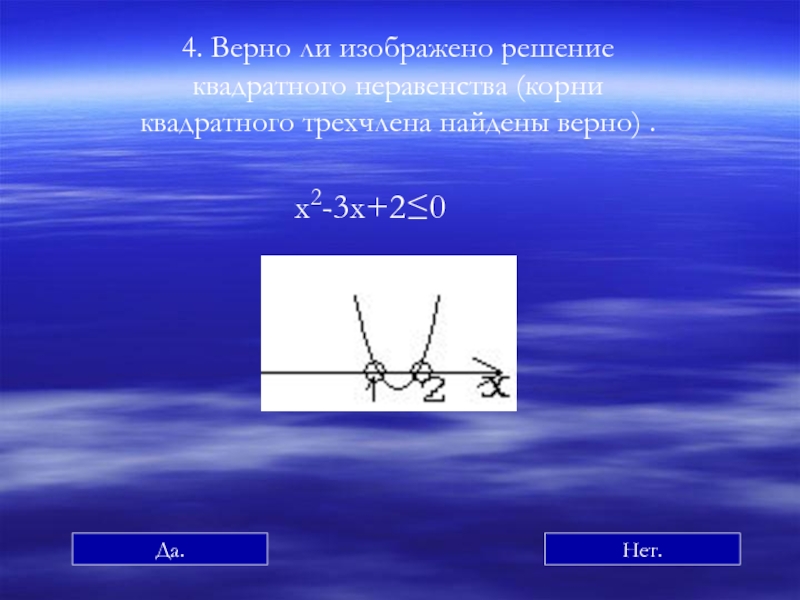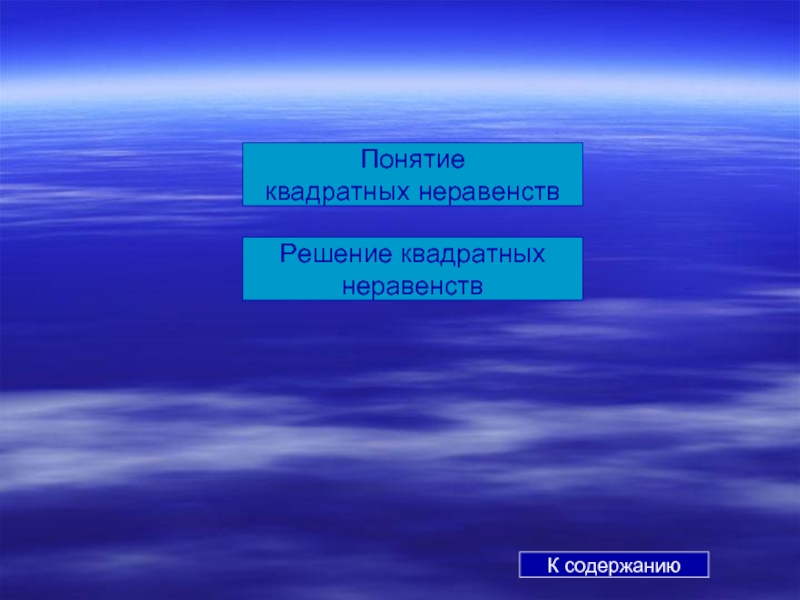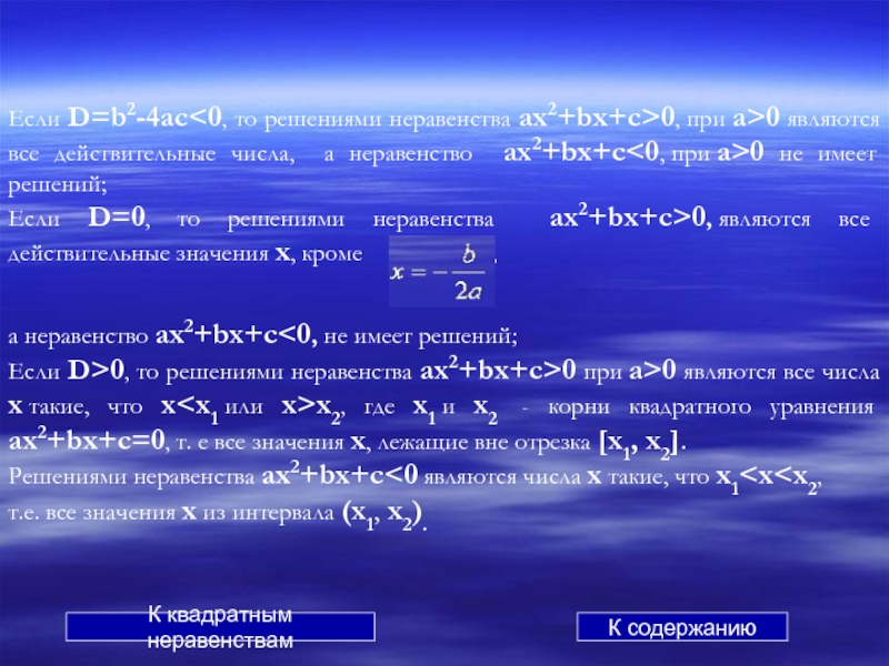 а неравенство ax2+bx+c<0, не имеет решений; К содержанию К квадратным неравенствам
