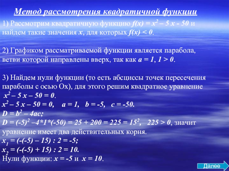 Метод рассмотрения квадратичной функции