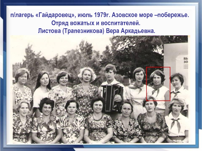 II-й р.: Лыбашев Виталий Гр. – уч. истории, вожатый (1-й справа).