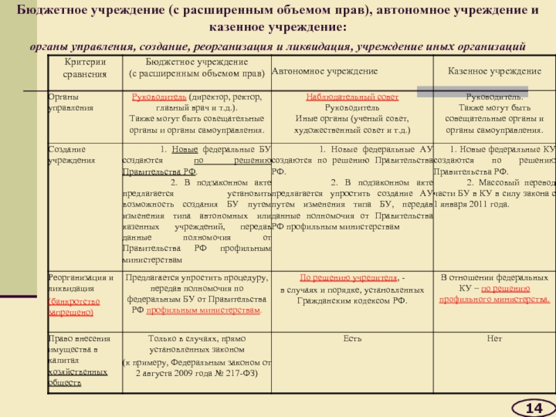 1)Расширение объема прав части бюджетных учреждений (по аналогии с АУ):