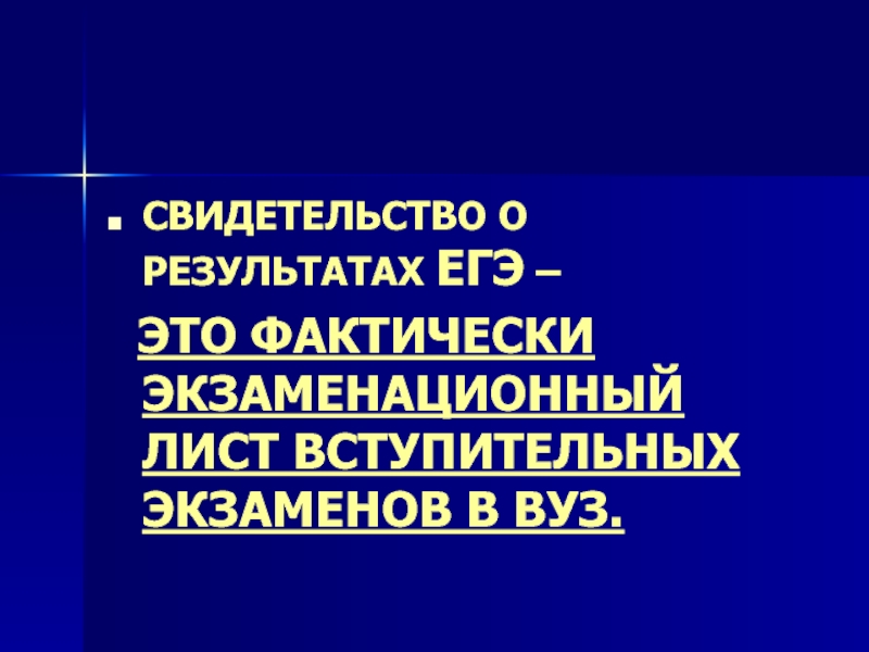 Слайд 7СВИДЕТЕЛЬСТВО О РЕЗУЛЬТАТАХ ЕГЭ –