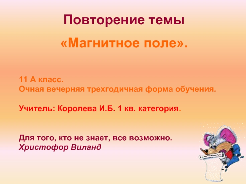 Слайд 73. Сила Лоренца, действующая на электрон, двигающийся со скоростью 107 м/с