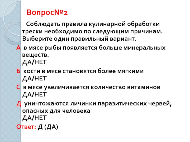 Д уничтожаются личинки паразитических червей, опасных для человека ДА/НЕТ