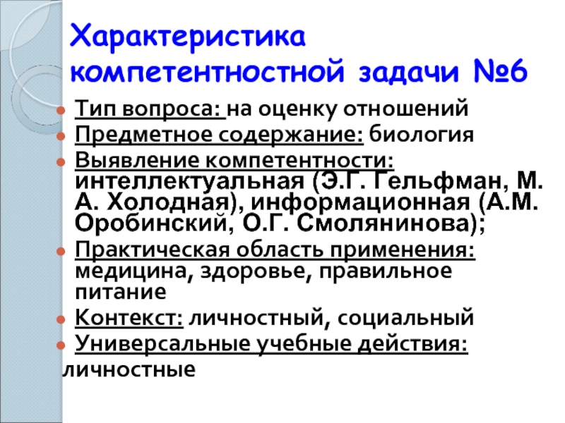 интеллектуальная (Э.Г. Гельфман, М.А. Холодная), информационная (А.М. Оробинский, О.Г. Смолянинова);