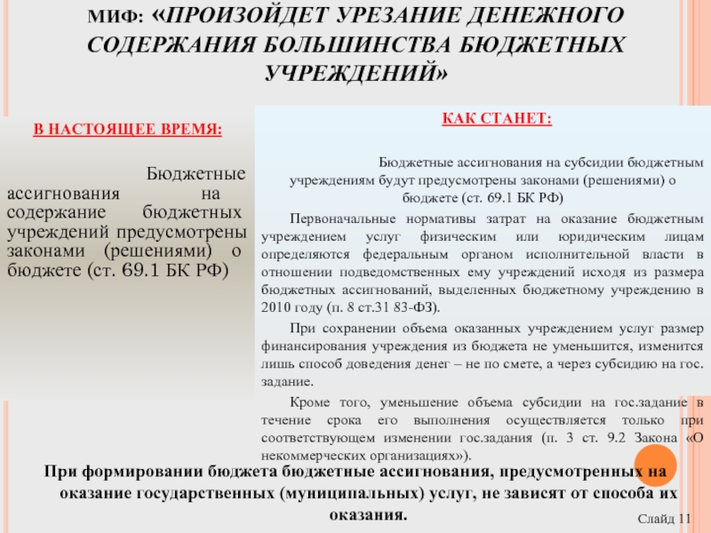 При формировании бюджета бюджетные ассигнования, предусмотренных на оказание государственных (муниципальных) услуг, не зависят от способа их оказания.