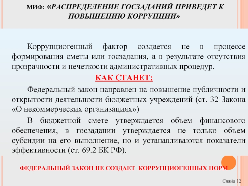 ФЕДЕРАЛЬНЫЙ ЗАКОН НЕ СОЗДАЕТ КОРРУПЦИОГЕННЫХ НОРМ