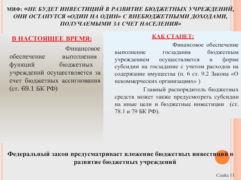 ФЕДЕРАЛЬНЫМ ЗАКОНОМ УСИЛИВАЕТСЯ НОРМА, О ТОМ ЧТО БЮДЖЕТНЫЕ УЧРЕЖДЕНИЯ ЯВЛЯЮТСЯ КЛАССИЧЕСКИМИ НЕКОММЕРЧЕСКИМИ ОРГАНИЗАЦИЯМИ С ОГРАНИЧЕНИЯМИ СФЕРЫ ОСУЩЕСТВЛЕНИЯ ПРИНОСЯЩЕЙ ДОХОД ДЕЯТЕЛЬНОСТИ