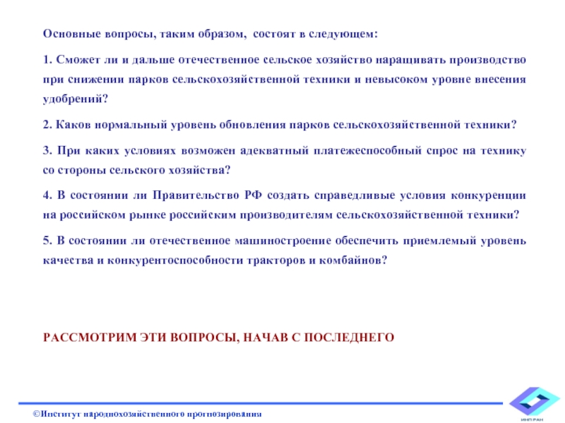 1. Отсутствие значимого роста платежеспособного спроса на сельскохозяйственную технику.