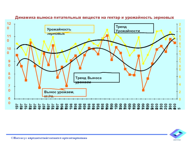 1. Урожайность культур проявляется в динамике выноса урожаем питательных веществ (на гектар пашни) – слайд 8.