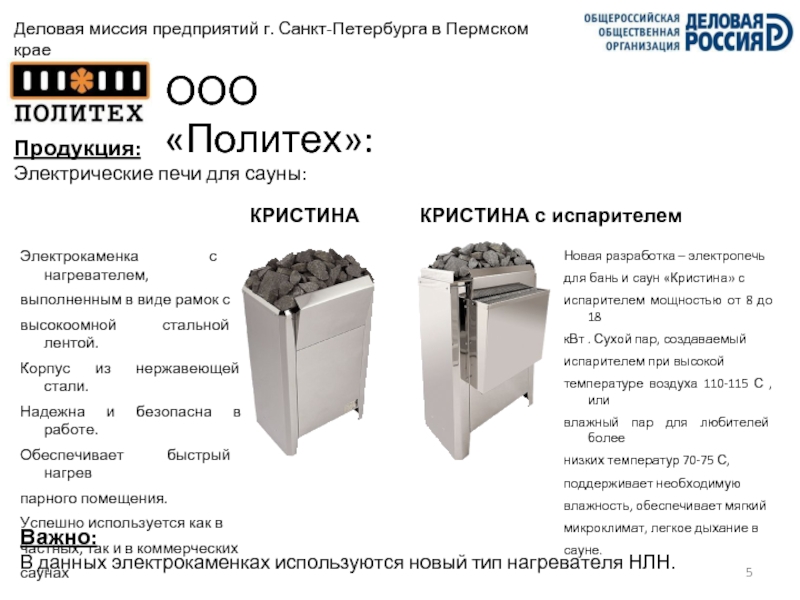 В данных электрокаменках используются новый тип нагревателя НЛН.