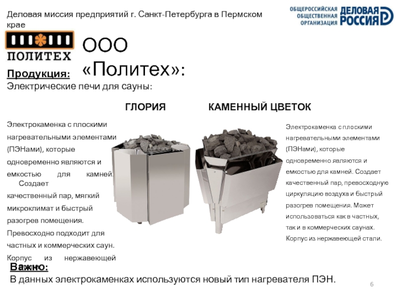 В данных электрокаменках используются новый тип нагревателя ПЭН.