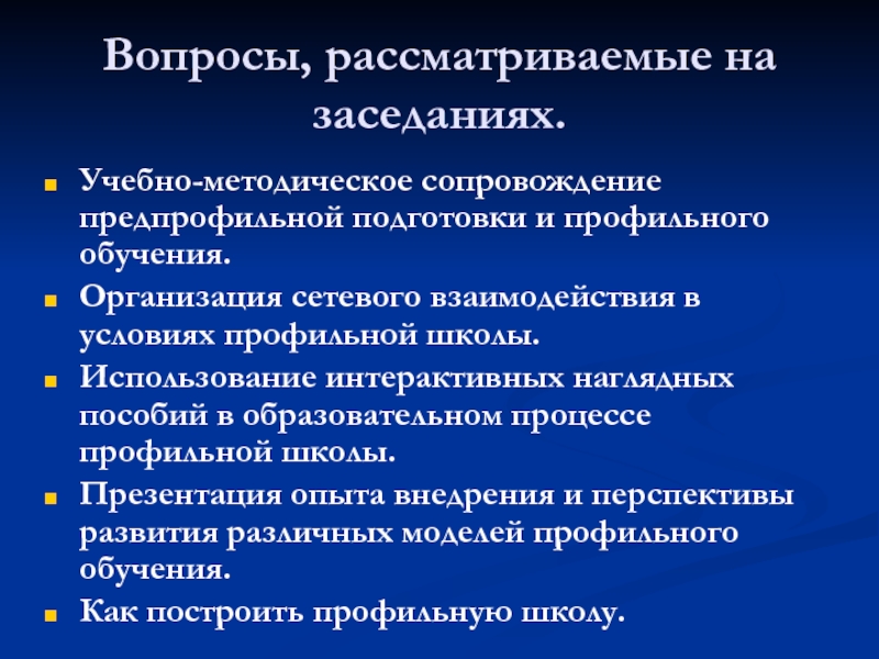 Школа проводит профилизацию своими силами, опираясь на собственные ресурсы, ориентируясь на требования одного или нескольких вузов, куда планируют поступать выпускники, или, ориентируясь на требования техникумов, колледжей, куда планируют поступать выпускники.