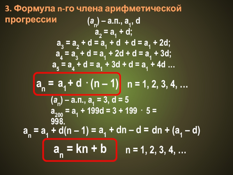 a200 = a1 + 199d = 3 + 199 ⋅ 5 = 998.