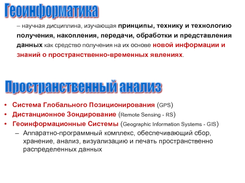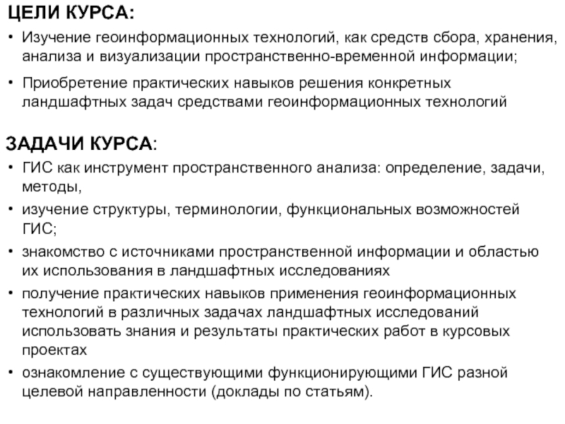 Изучение геоинформационных технологий, как средств сбора, хранения, анализа и визуализации пространственно-временной информации;