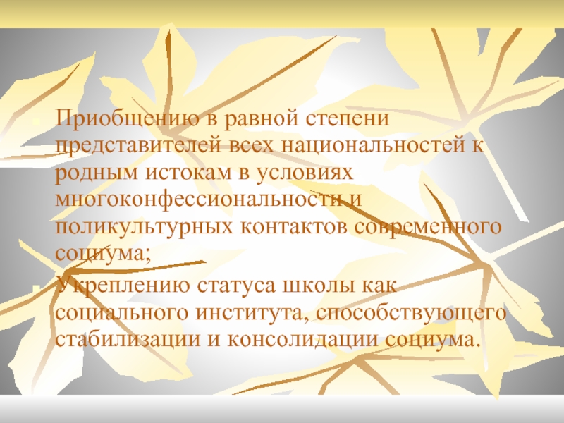 Укреплению статуса школы как социального института, способствующего стабилизации и консолидации социума.