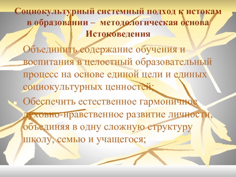 Слайд 11Социокультурный системный подход к истокам в образовании – методологическая основа Истоковедения