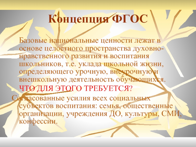 Согласованные усилия всех социальных субъектов воспитания: семья, общественные организации, учреждения ДО, культуры, СМИ, конфессии.