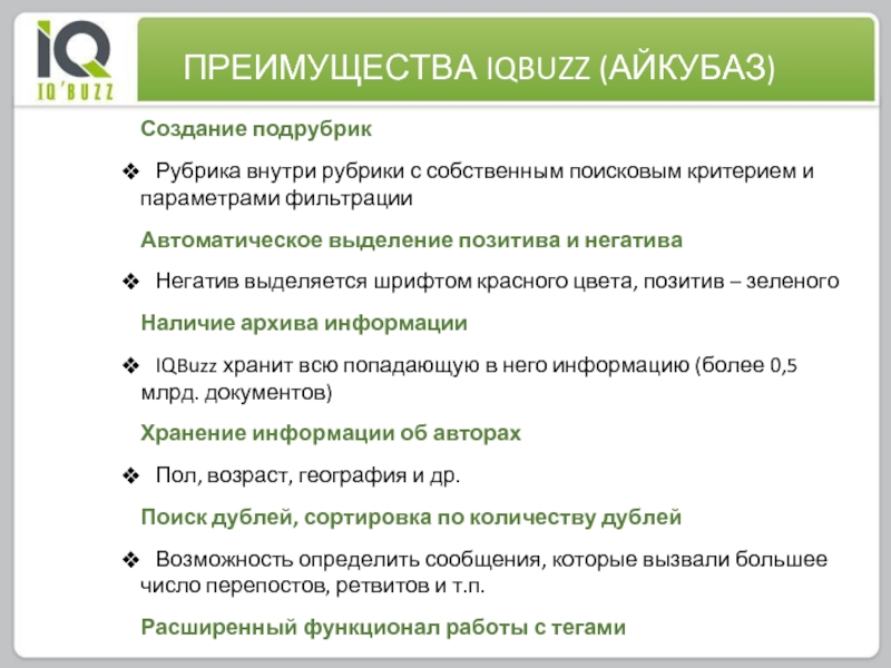 ПРЕИМУЩЕСТВА IQBUZZ (АЙКУБАЗ)