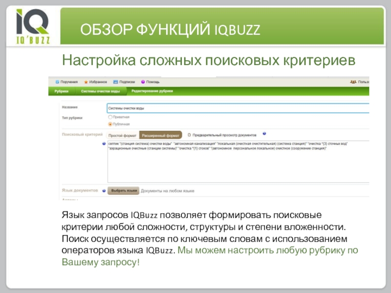 ОБЗОР ФУНКЦИЙ IQBUZZ