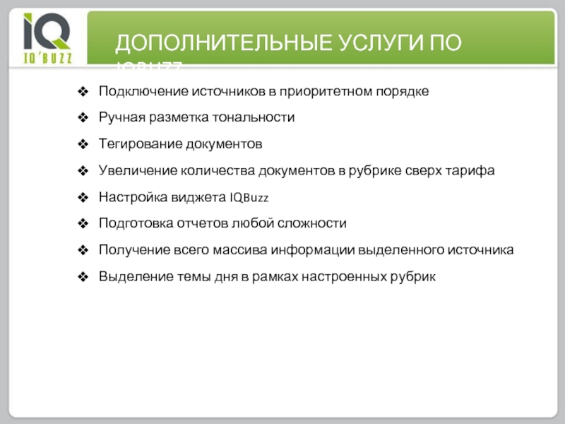 ДОПОЛНИТЕЛЬНЫЕ УСЛУГИ ПО IQBUZZ