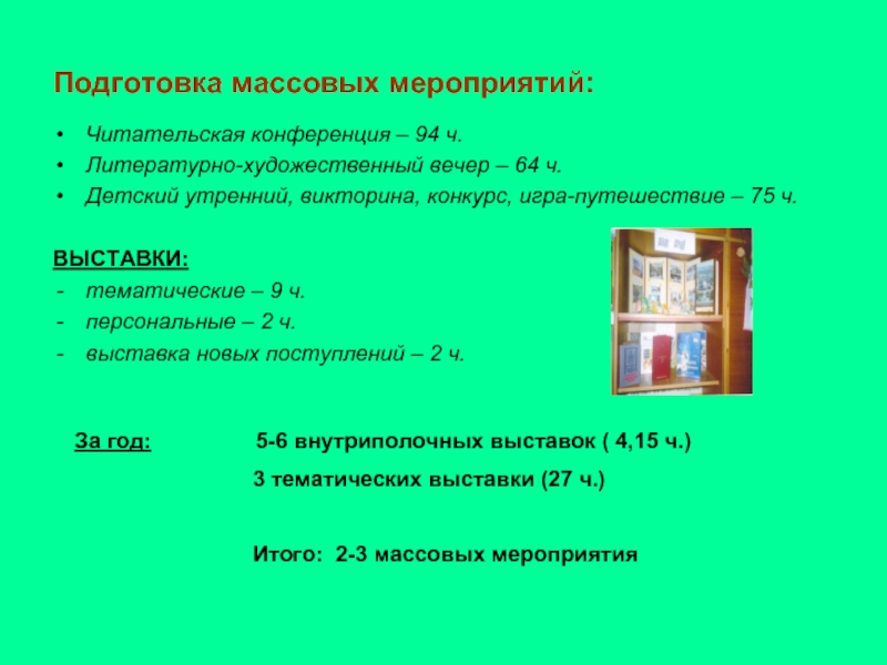 За год: 5-6 внутриполочных выставок ( 4,15 ч.)
