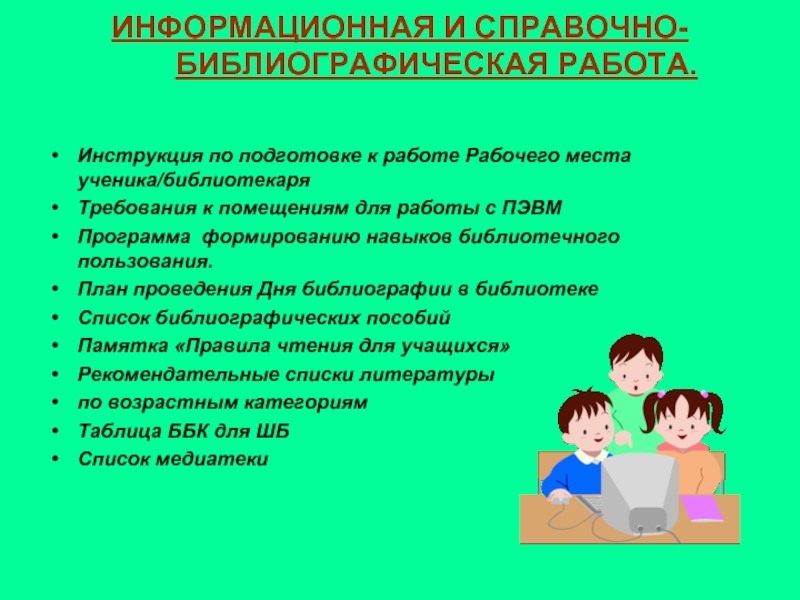 «2 ч. Рабочего дня выделяется на выполнение внутрибиблиотечной работы» («Примерное Положение о библиотеке ОУ»)