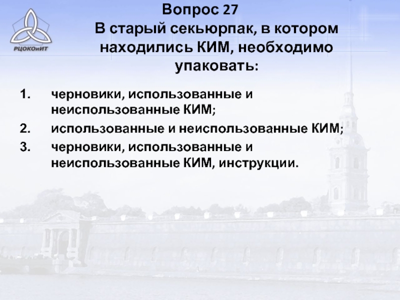 В старый секьюрпак, в котором находились КИМ, необходимо упаковать: