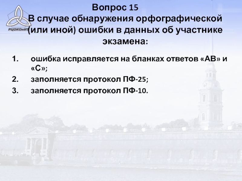 во вопросам, связанным с нарушением участником экзамена инструкции по заполнению бланков ответов.
