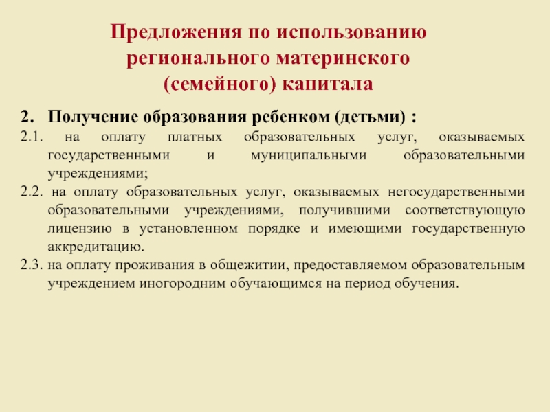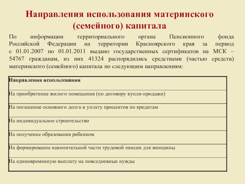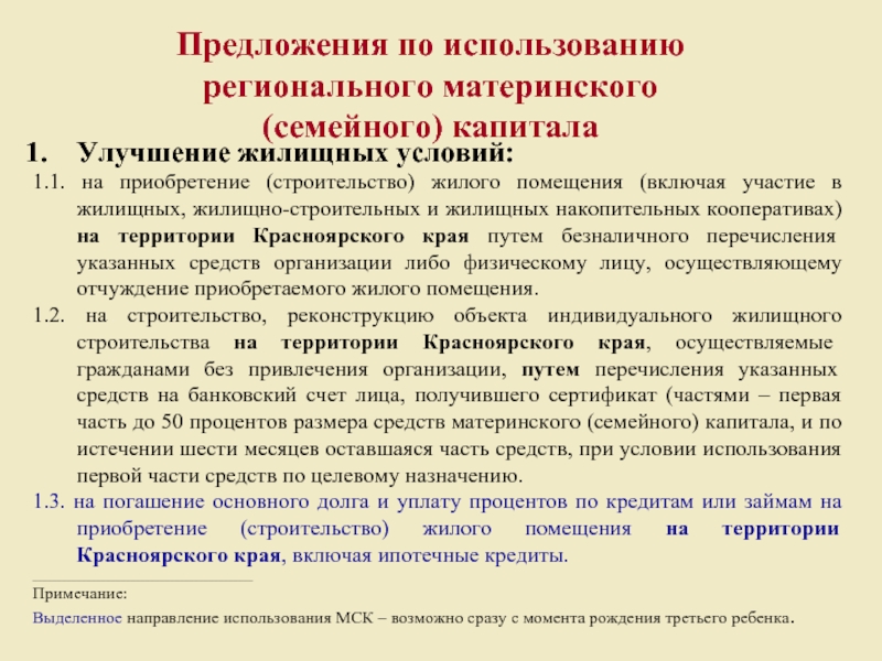 Выделенное направление использования МСК – возможно сразу с момента рождения третьего ребенка.