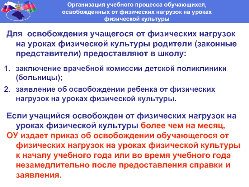 Если учащийся освобожден от физических нагрузок на уроках физической культуры более чем на месяц,