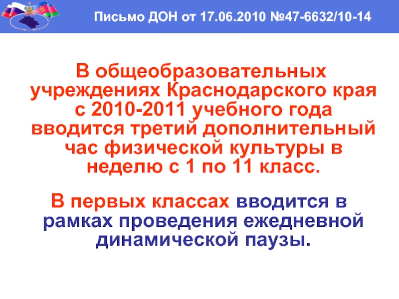 Слайд 1Об организации занятий физической культуры в общеобразовательных учреждениях края