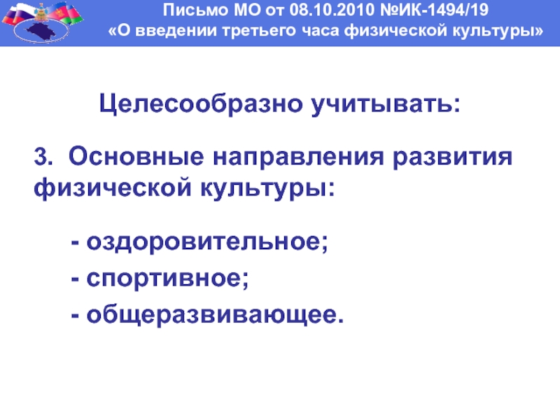 рекомендации о введении третьего часа физической культуры в недельный объем учебной нагрузки обучающихся общеобразовательных учреждений