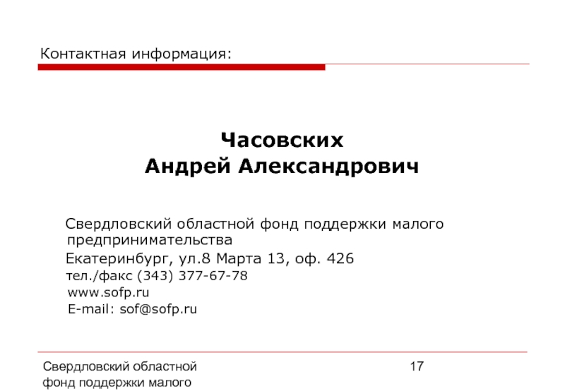 Исполнительный директор Свердловского областного фонда поддержки малого предпринимательства