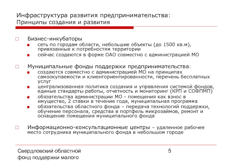 Создание и развитие инфраструктуры поддержки малого бизнеса: