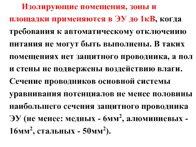 Слайд 23 Изолирующие помещения, зоны и площадки применяются в ЭУ до 1кВ, когда